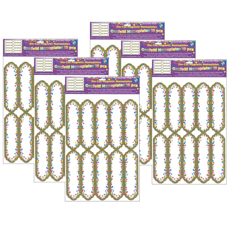 Ashley Productions® Magnetic Die-Cut Large Nameplates & Labels, Confetti, 10 Per Pack, 6 Packs
