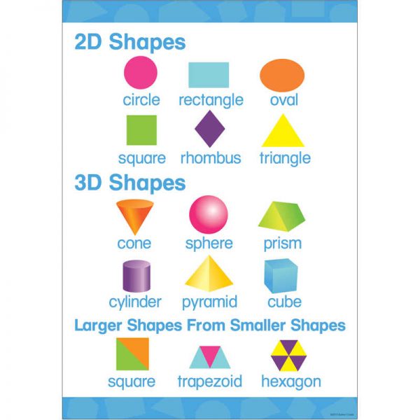 Visually reinforce key early learning skills with this Shapes Early Learning Poster. Children will learn to identify and name two-dimensional and three-dimensional shapes. A large 17 x 22″ size makes it easy to see across the room. Fill your space with learning using all the coordinating Early Learning Posters by Barker Creek.