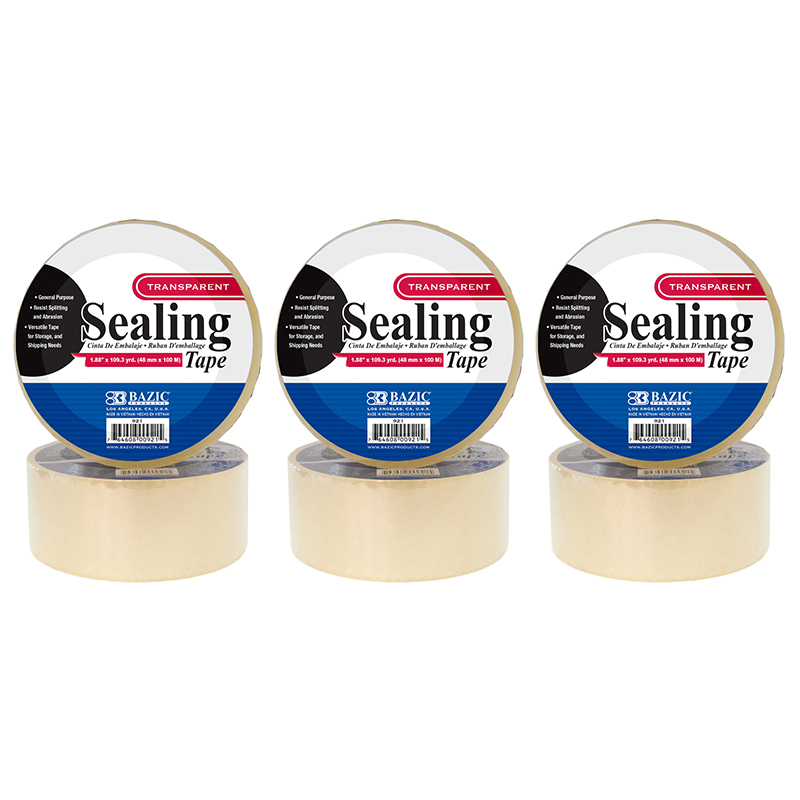 • STRONG ADHESIVE. BAZIC transparent or tan packaging tape unwinds smoothly and easily; resists splitting and tearing, adheres instantly and has a strong film backing.