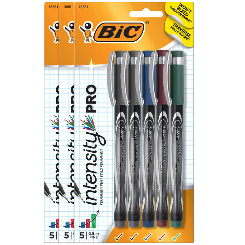 BIC® Intensity® Pro Marker Pen, Fine Point (0.5mm), Assorted Colors, 5 Per Pack, 3 Packs