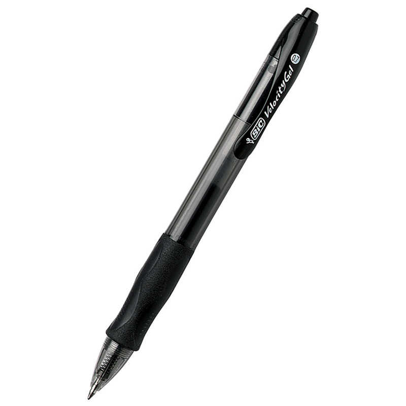 BIC® Velocity® Gel Retractable Roller Ball Pen, 0.7 mm, Black, Pack of 12