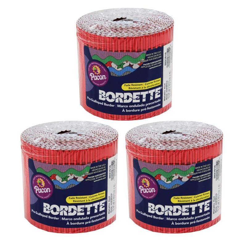 Bordette® Decorative Border, Metallic, Red, 2-1/4″ x 25′, 3 Rolls