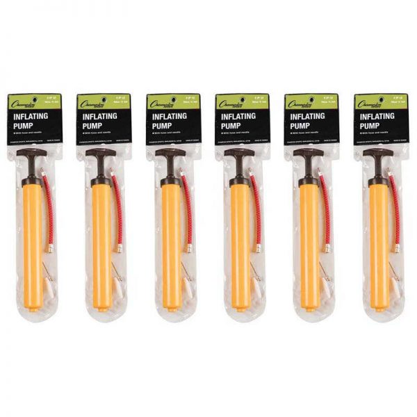 Small, simple and easy to use, the Champion Sports 12-inch Plastic Hand Pump is perfect for playgrounds, gyms and anywhere a ball or tire needs inflation. This compact hand pump is easy to transport, and each pump includes a hose and needle to help inflate a variety of balls. Sold as pack of 6 pumps.