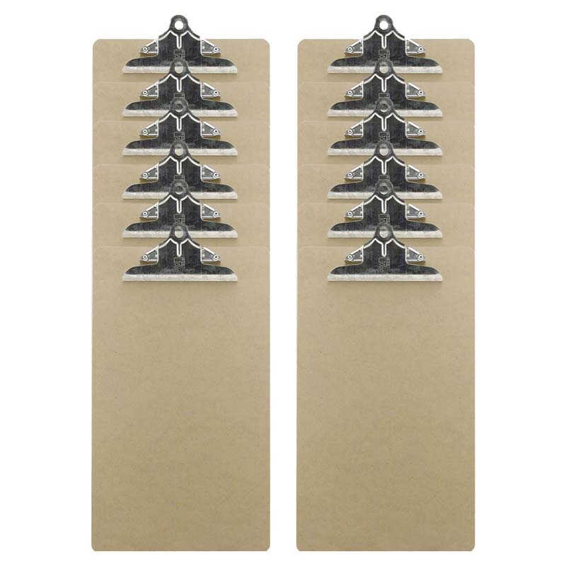 Double sided 1/8″ masonite hardboards allow you to take your work anywhere. Designed with smooth beveled edges for comfort and safety. Six inch metal clips with high tension spring provide secure grip. Sturdy masonite clipboards will allow you to write with ease while you walk around! Six inch metal clips with high tension spring provides a secure grip to hold all your papers. Legal Size. Sold as a pack of 12 clipboards.