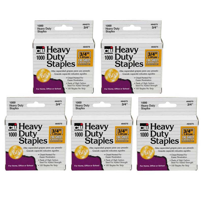 Charles Leonard Heavy Duty Staples, 3/4 Inch Leg Length, Carbon Steel, Silver, 1000 Per Pack, 5 Packs