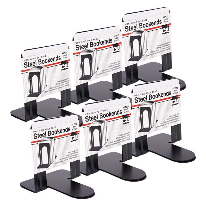 Charles Leonard Metal Bookends, 5″ Height, Black, 2 Per Set, 6 Sets