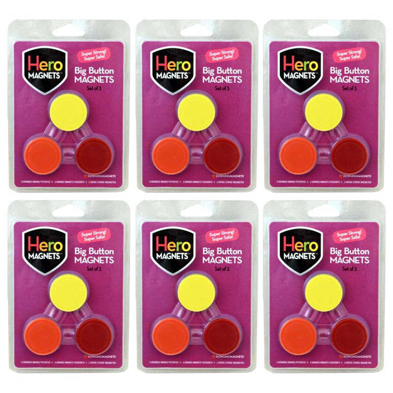 Dowling Magnets® Hero Magnets: Big Button Magnets, 3 Per Pack, 6 Packs