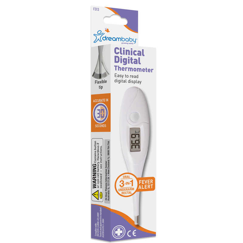 The Dreambaby® Clinical Digital Thermometer is equipped with a state of the art fever alert rapid beep indicator. Made from durable materials, it will last for years and is perfect for the whole family to use. The 3-in-1 design allows you to monitor temperature orally, under the arm and rectally.
