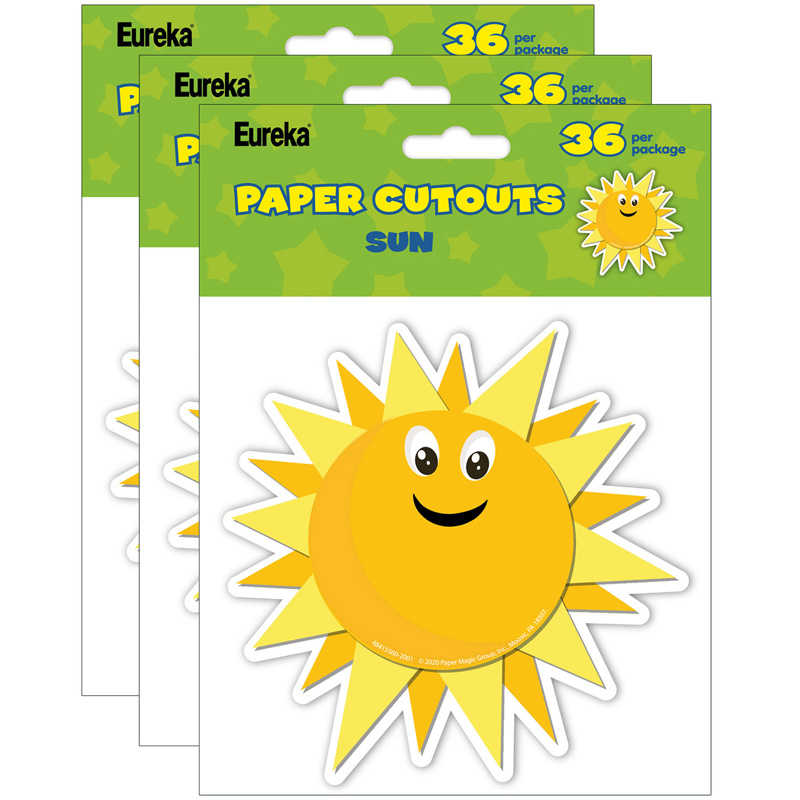 Eureka paper cut-outs are a great way to add creativity and fun to bulletin boards, hallways, projects, and more. Each paper cut out measures 5.5″ x 5.5″. Each pack includes 36 paper cut outs. Sold as 3 packs for a total of 108 cut outs.