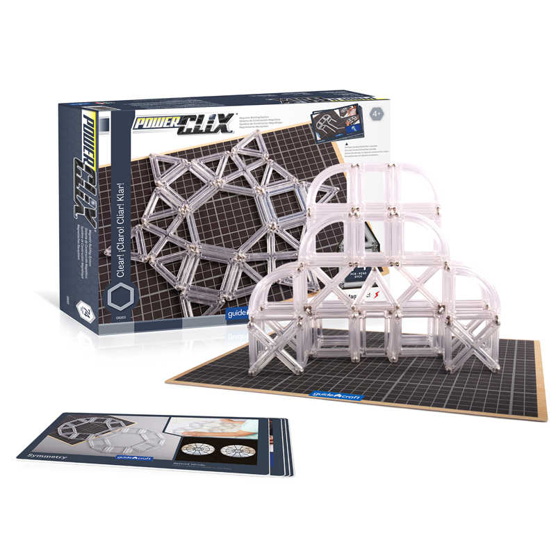 PowerClix Clear is the ultimate architectural building kit. With clear frame pieces that reveal the connecting magnets and mechanics of each piece, children can focus on the structure of their creations and the building pieces they use. In keeping with STEM toy attributes, PowerClix magnetic building toys encourage children to think like engineers while having fun. Children can build unlimited 3D forms by visualizing the underlying design structure of an object, then creating a wireframe model of it using magnetic frames of geometric shapes. PowerClix Clear pieces are designed to integrate flawlessly with all PowerClix system sets. Organize and store PowerClix pieces easily with the new metal plate built right into the packaging. The metal plate may be used as a building base as well. Ages 4+