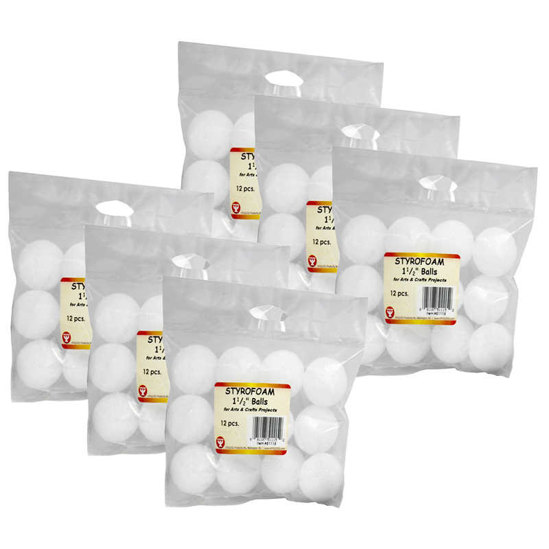 Hygloss® Styrofoam, 1.5″ Balls, 12 Per Pack, 6 Packs