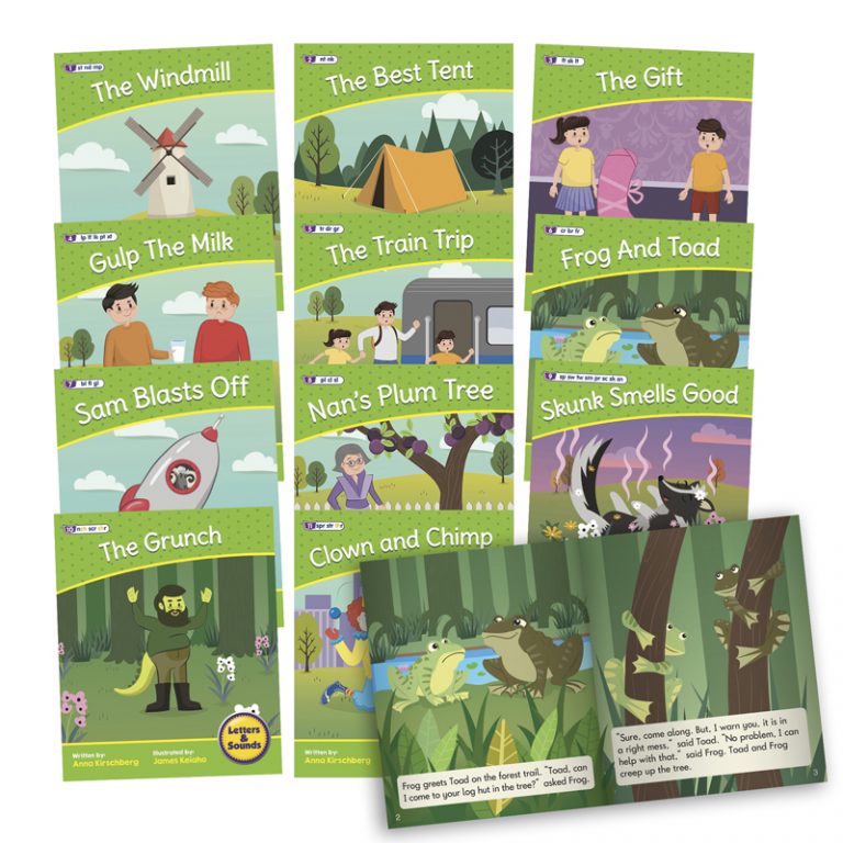 Blend readers introduce 38 different adjacent consonants (blends). The text uses only decodable regular words (according to the week by week progression) along with ‘tricky words’. Set includes 12 fiction readers, each with colorful illustrations.