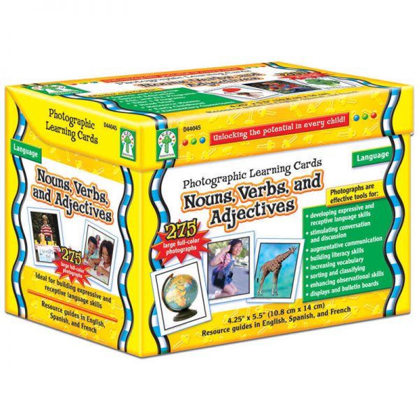 • The Nouns, Verbs and Adjectives set includes 275 photo cards and 13 resource cards