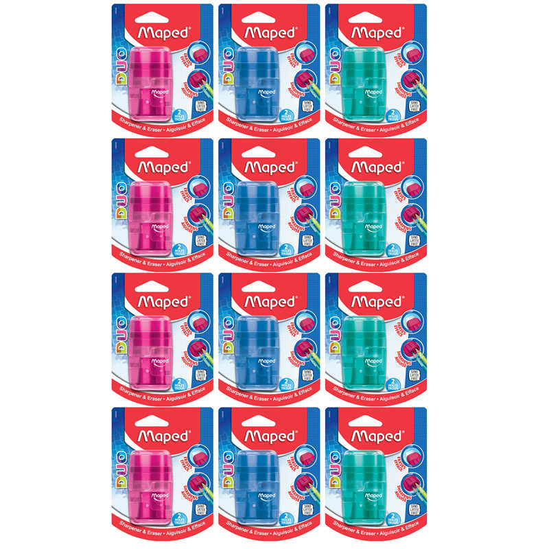 Maped® Connect DUO 2 Hole Sharpener / Eraser Combo, Assorted Colors, Pack of 12