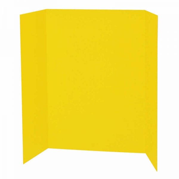 Presentation Boards are tri-fold, single wall corrugated display boards used for projects, booths, science fair presentations and all types of displays. Boards have a smooth, flat, uniform surface to accept many types of medium. Boards are Yellow on the front and Natural Kraft on the back. The full display size is 48″ x 36″ and the board folds to 24″ x 36″. Recyclable.