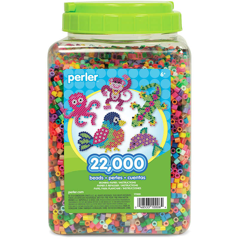 Possibilities are endless with this 22,000 multi-mix bead jar from Perler. With plenty of beads and a wide variety of colors, these Perler Beads will keep kids busy for hours! Designed to be used with Perler pegboards and ironing paper, these easy-to-use beads can be fused together with a household iron or strung together to create lots of cool designs. Ironing paper and easy instructions included. For ages 6 and up.