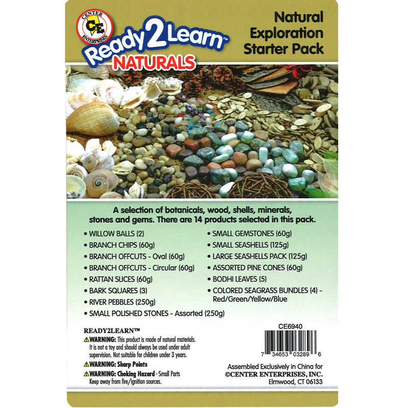 This selection of botanicals, wood, shells, minerals, stones and gems enables children to explore, discuss and discover the natural outdoor environment. Each pack includes 14 products: Willow Balls (2), Branch Chips (60g), Branch Offcuts-Oval (60g), Branch Offcuts-Circular (60g), Rattan Slices (60g), Bark Squares (3), River Pebbles (250g), Small Polished Stones-Assorted (250g), Small Gemstones (60g), Small Seashells (125g), Large Seashells Pack (125g), Assorted Pine Cones (60g), Bodhi Leaves (5), and Colored Seagrass Bundles (4)-Red/Green/Yellow/Blue.