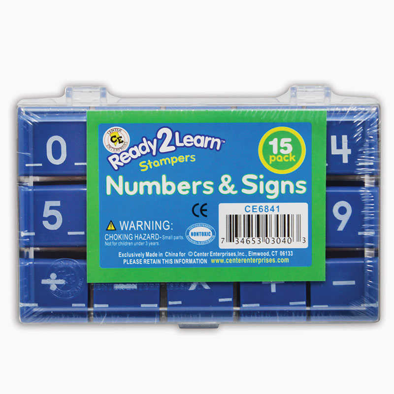 • This set includes 15 plastic stamps with rubber imprints of numerals 0-9 and division, equals, multiplication, addition and subtraction signs.