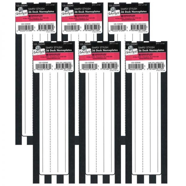 Schoolgirl Style™ Simply Stylish Black & White Stripe Nameplates, 9.5″ x 2.875″, 36 Per Pack, 6 Packs