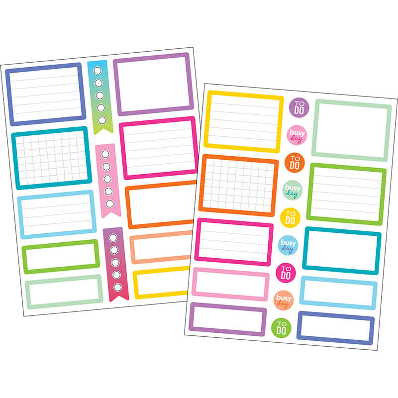 Make your notes and plans stand out by adding colorful planner stickers. These cheerful stickers will help you mark a deadline, remember a special day, or give you a little inspiration. They are the perfect addition to Teacher Created Resources lesson planners. Each pack includes 96 stickers in 32 designs.