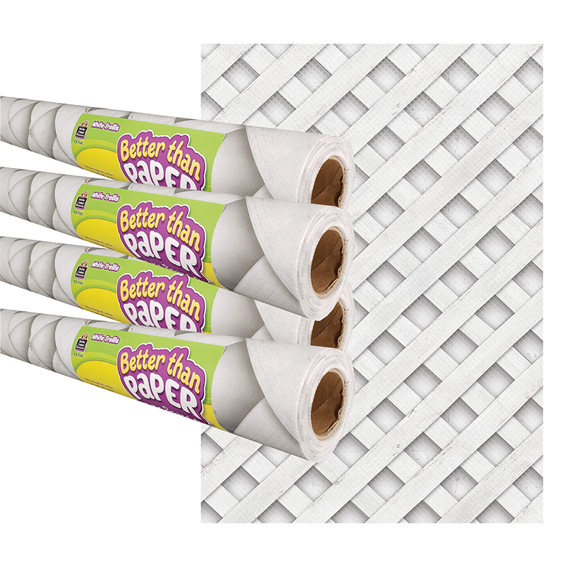 Teacher Created Resources White Trellis Better Than Paper Bulletin Board Roll, 4′ x 12′, Pack of 4