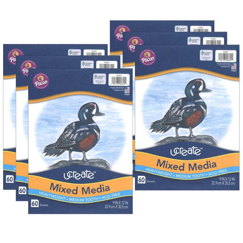 UCreate® Mixed Media Art Paper, Heavyweight, 9″ x 12″, 60 Sheets Per Pack, 6 Packs