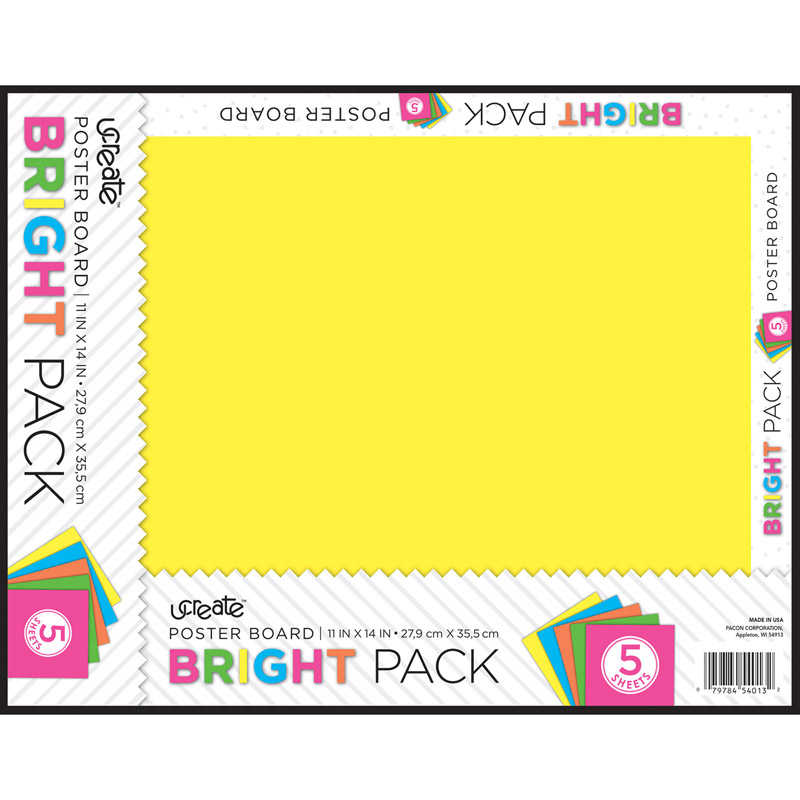 UCreate® Neon Poster Board, 5 Assorted Colors, 11″ x 14″, 5 Sheets/Pack, Carton of 24 Packs