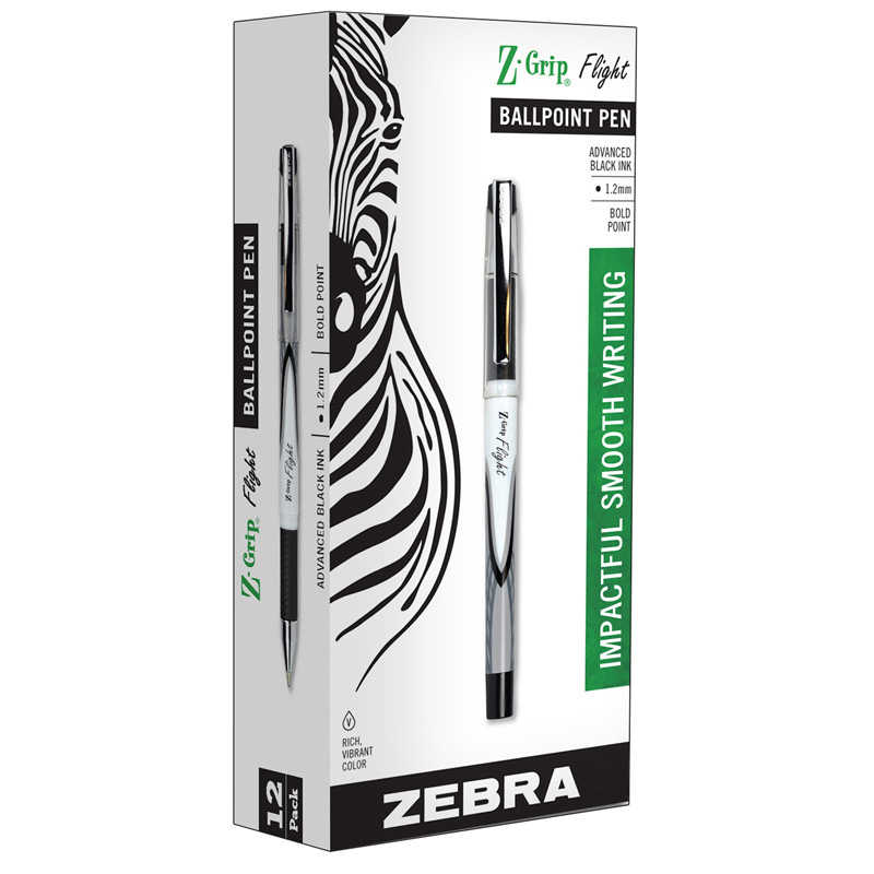 The Z-Grip Flight ballpoint retractable pen delivers on style with impactful smooth writing performance. Superior ink performance delivers a silky writing experience. Metal clip for secure clasp. Has a comfort grip. Each pack includes 12 pens. Sold as 2 packs for a total of 24 pens.