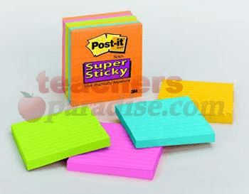 3M® > 3M COMPANY Post-It Notes Super Sticky 6 Pads Neon Fusion Colors 4 X 4 Lined MMM6756SSAN