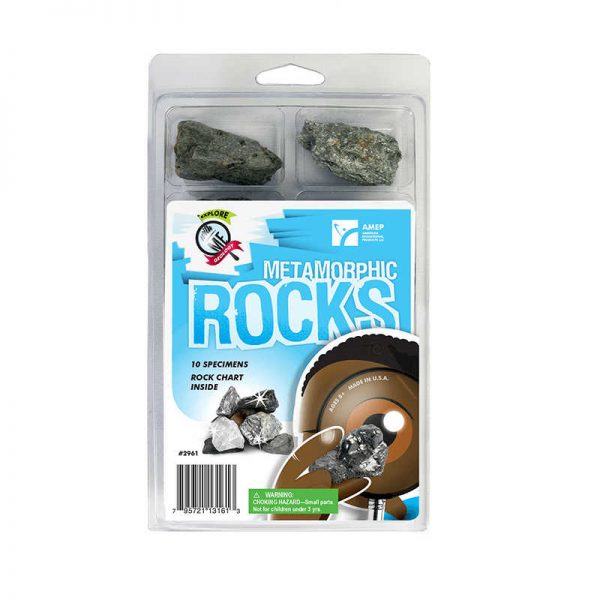 Part of the EXPLORE WITH ME GEOLOGY? series, the Metamorphic Rock Collection includes a set of 10 specimens enclosed in a handy, plastic storage container. The included rock identification chart, complete with images and a brief description will help kids better understand how metamorphic rocks are created. A perfect starter set for the young budding geologist!