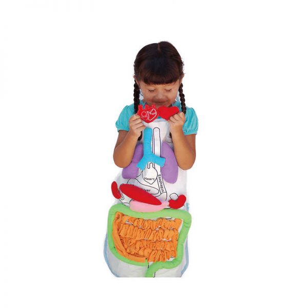 Enjoy learning about the organs with the fabric models attached to this apron! All the organ parts use hook-and-loop fasteners so they are detachable. You can actually feel the size and length of the organs. You can see how the heart is divided into 4 chambers.