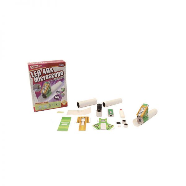 “Build-It-Yourself” LED 40x Microscope is a powerful little microscope that’s easy to assemble and even more fun to use! Bright LED light and 40x magnification makes it easy to explore. Explore objects such as surfaces of printed materials, plants, insects, money, and other everyday objects around you!