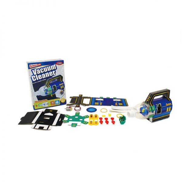 Top Toy of the Year 2013! “Build-It-Yourself” vacuum cleaner really works and picks up small debris like a real vacuum! Easy and fun to assemble out of your favorite recycled plastic bottle. Learn the concepts of air pressure, motors and electricity!