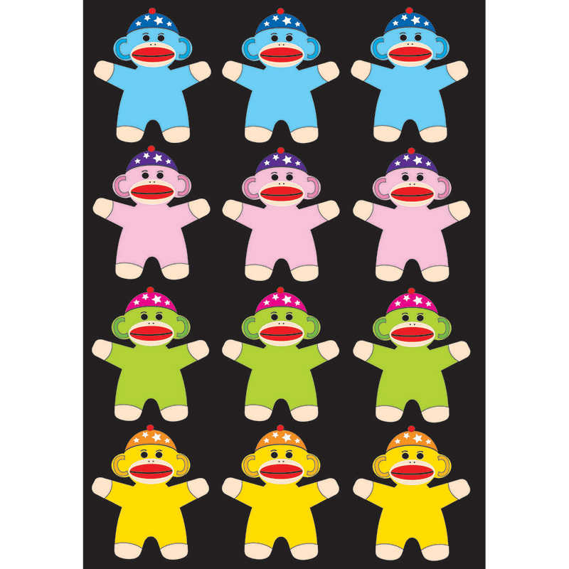 12 Magnetic sock monkeys on magnetic sheet. Great for accents, games, names and general classroom use