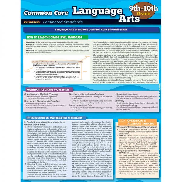 BARCHARTS, INC. COMMON CORE LANGUAGE ARTS GRADE 9-10 STANDARDS QS-222774