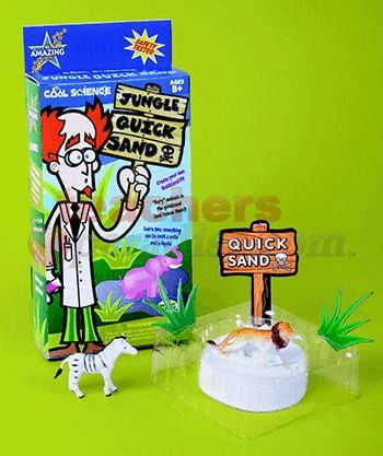 Jungle Quicksand is a cool science adventure. Make your own tricky quicksand and explore its strange and unusual properties. Whether you scoop it, poke it, or squeeze it, you’ll be amazed by how it acts (stuff like this even defied the great Isaac Newton!) You can trap unsuspecting travelers and create your own jungle scene, complete with jungle animals and decorations. Learn about what makes real quicksand work, and how to escape next time you get caught in it.