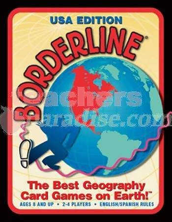BORDERLINEr USA Edition is a card game consisting of 73 cards which teaches US geography in a fun and interesting way.50 State cards 2 Country cards (Canada and Mexico) 1 Gulf of Mexico card 2 Ocean cards (Atlantic and Pacific) 1 Great Lakes card 16 Wildcards 1 Rules card The object of the game is to get rid of all your cards first.