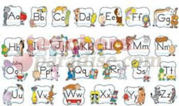 This mini bulletin board set and more includes: reproducible badge and bookmark patterns; 26 alphabet pieces, approx. 4 inches x 4.5 inches to 4.5 inches x 7 inches; 52 yellow word cards (2 words for each letter of the alphabet); and a resource guide.