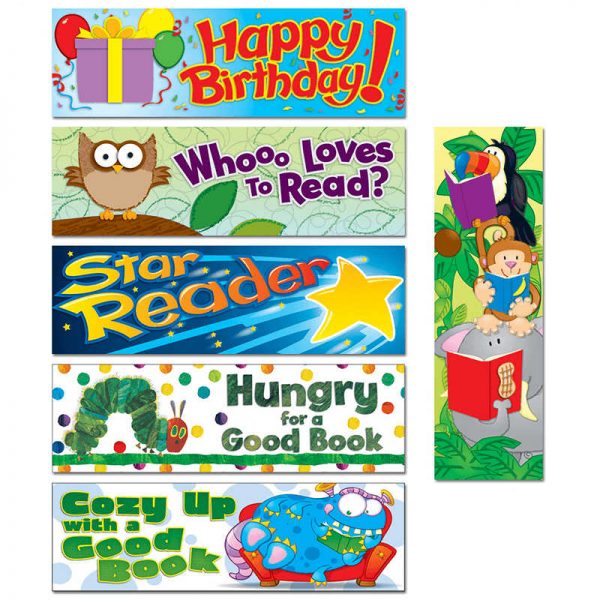 Encourage reading with these colorful, fun bookmarks. They work great as rewards or in classroom treasure chests. Includes Birthday, Owl, Jungle, Star Reader, The Very Hungry Caterpillar , and Reading Monster designs.