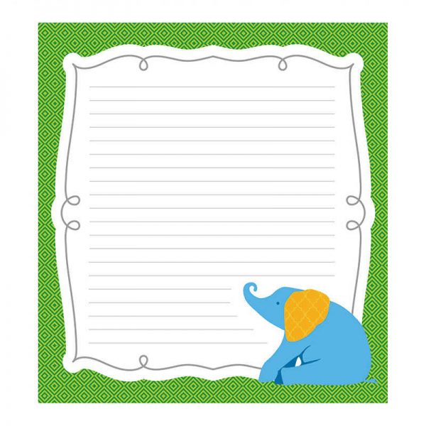 Add a cheerful touch of color to your everyday notes with the Parade of Elephants notepad. The fresh, bright colors and popular patterns make it fun and easy to express yourself! Great for parent notes, awards, job assignments, labels, games, and craft projects, the notepad includes 50 sheets that are acid-free and lignin-free. Approximate size is 5.75″ x 6.25″. The Parade of Elephants collection features the perfect blend of fresh, bright colors and popular patterns. Look for coordinating products in this design to create an exciting and cohesive classroom theme!