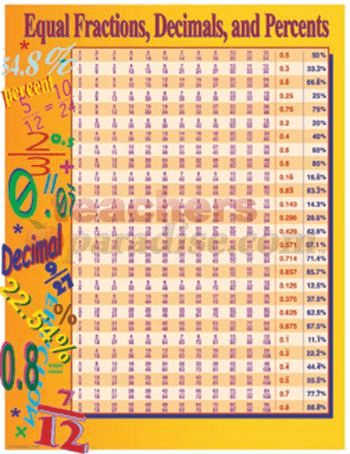 CARSON DELLOSA Equal Fractions, Decimals, and Percents Chartlet CD-5939
