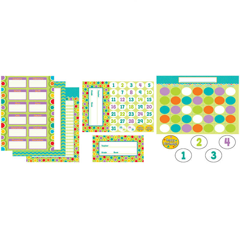 The new Classroom Coordinates in the Fresh Sorbet design provides teachers with a complete classroom solution for decorating and showing off their own sense of style! The right color shade can transform a distracted, frazzled environment into a calm and focused space. This new, unique and functional Bulletin Board Set proves that colorful, fashionable classroom decorations can do more than just decorate – ;they help motivate students and promote a creative, positive classroom environment while still being versatile enough to stay up all year. This 40-piece set includes 1 birthday chart, 1 calendar, 1 incentive chart, 1 all-purpose chart, 35 calendar cover-ups (2 1/2″ x 2″) and a door label (8 7/8″ X 17″). All charts are 17″ x 24″. Look for coordinating products in this color pallet designed to create an exciting and cohesive classroom theme!