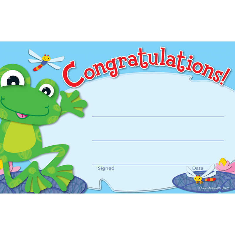 The playful and light-hearted FUNky Frogs design creates a cheerful and inspirational award that students will be proud to receive. Easy to personalize and customize to any occasion and student. Available in packs of 30. Great to have on hand to celebrate students’ accomplishments and achievements. Look for coordinating products in this design to create an exciting classroom theme! Each sheet measures 5 12;” x 8 12;”.