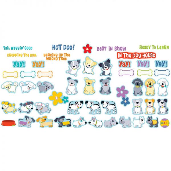 Welcome adorable furry friends into the classroom and make behavior management fun with the Hot Diggity Dogs Behavior bulletin board set. Includes 53 total pieces: 30 dogs, 6 dog bones, 7 text overlays,1 dog bowl,and 9 accents. The Hot Diggity Dogs collection features an assortment of lively characters in bright, contrasting designs and patterns with a splash of vivid colors to keep the classroom fun and engaging.