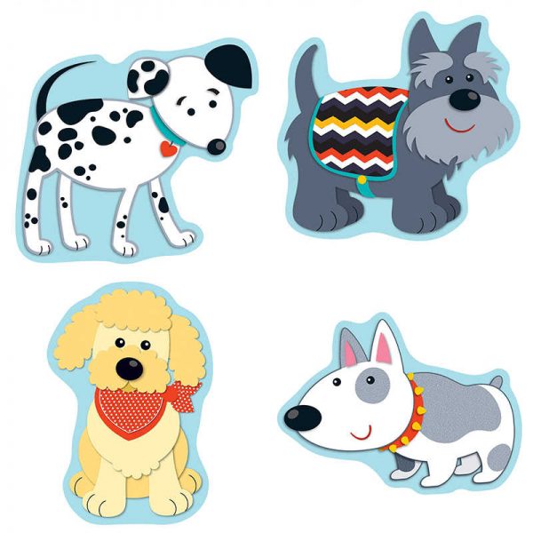 Welcome adorable furry friends into your classroom with Hot Diggity Dogs Cut-Outs. These assorted cut out shapes are fun additions to any classroom setting and can be used for more than just decoration. Great for sorting activities, calendar activities, game pieces, name tags, reward cards, and much more. Perfect to brighten up cubbies, walls and bulletin boards too. This 39 piece pack includes an assortment of bold colors and designs measuring 6″ x 6? printed on card stock. Look for coordinating products in this character theme and a full assortment of coordinating color pallet designs to create an exciting cohesive classroom theme!