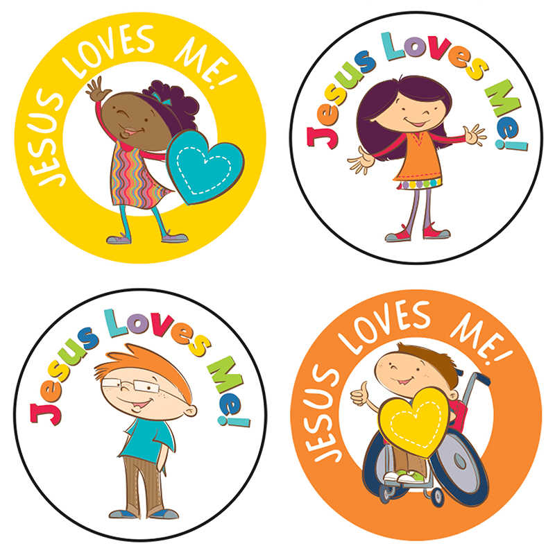 Share the love with the inspirational Jesus Loves Me shaped stickers. Includes 72 stickers total, 6 sheets with 12 stickers each. Stickers are perfect in the Sunday school room or at home, to reward students. They provide positive, inspirational reminders that are sure to brighten any students’ day. Ideal for prize boxes and craft projects, stickers and are an essential addition to any teacher’s desk or treasure chest!