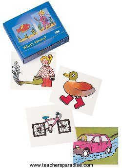It’s raining under the umbrella! The duck is wearing boots. These cards are guaranteed to delight young imaginations and stimulate children to think and talk absurdities. Create an ideal atmosphere for language development as well as help them explore an infinite variety of concepts connected with what’s wrong and what’s right. Includes 68 cards (5” x 4 3/8”) and a teacher’s guide written in English, French, German, and Spanish.