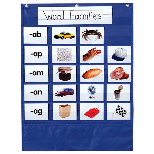 This is the perfect pocket chart for playing games, tracking behavior, teaching sight words, and so much more! It includes 6 pockets and storage. 6 clear horizontal pockets Storage pocket with hook-and-loop tape closure 19″ x 25″