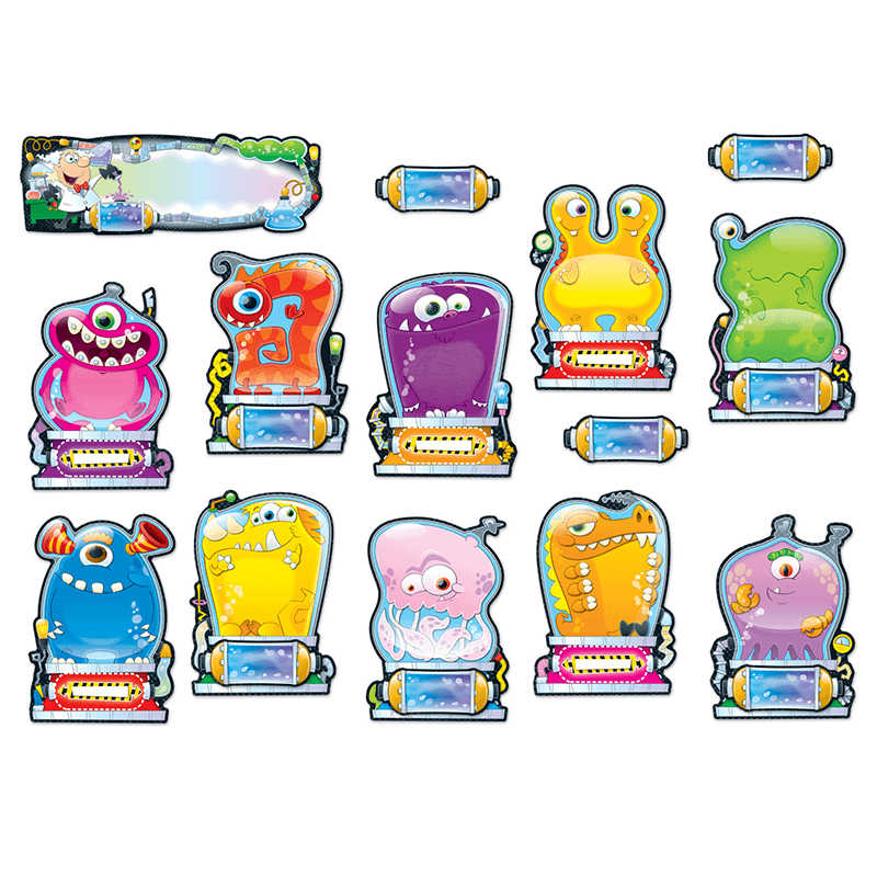 Help make those monstrous jobs seem more tame with this fun job assignment bulletin board set. 12 monsters, each approx. 8″ x 11.5″ 30 student pieces Mad scientist blank header Resource guide