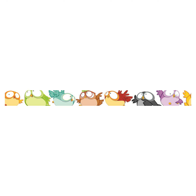 Students will be entranced with this eye-catching straight-edged Owl Pals border featuring an assortment of playful owls with colorful bows and bow ties in a fresh, contrasting design. Straight-edged borders add color and personality to any classroom crea